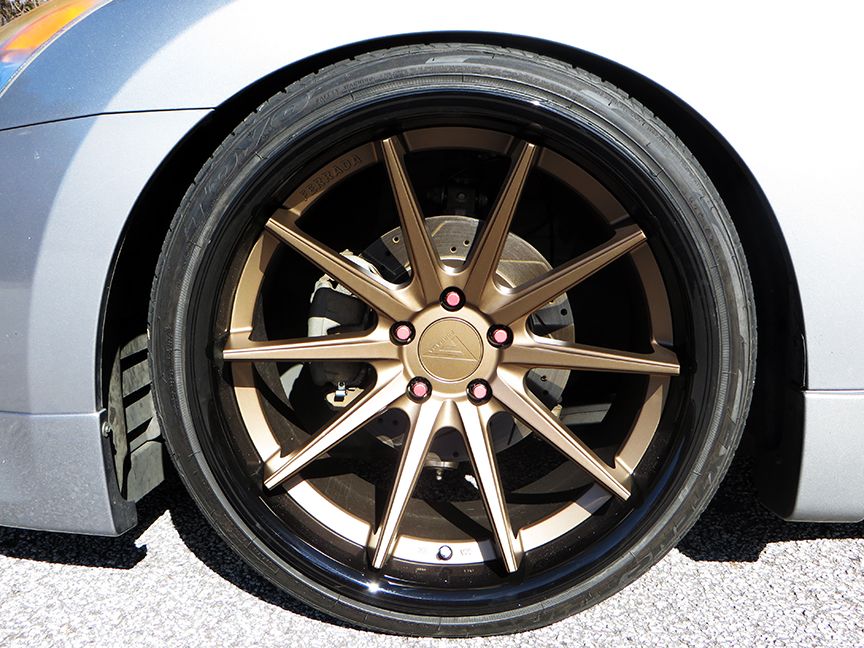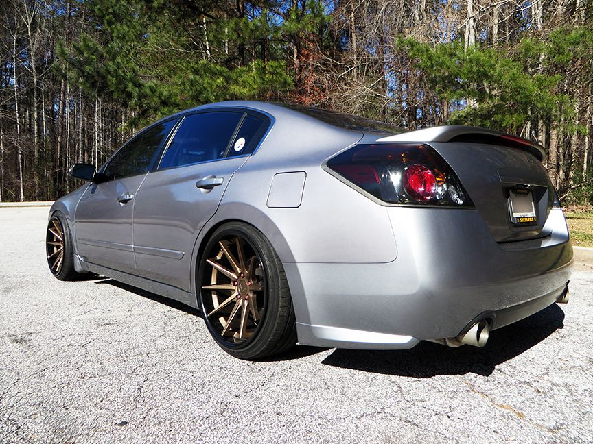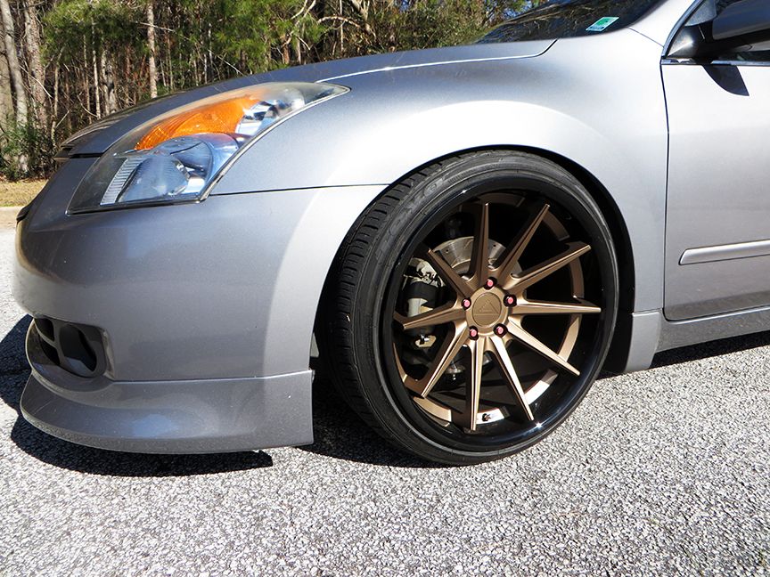 Can some of you that have replaced your wheels with aftermarket or anything other than stock, post some pics. It would be nice to see some different sizes with specs (including tire size) and even if you've lowered the car or not and maybe how much. I hear a lot of people talking about lowering the front only, not at all, or all around and it would be nice to see some comparisons.